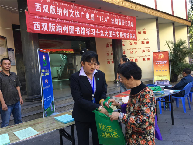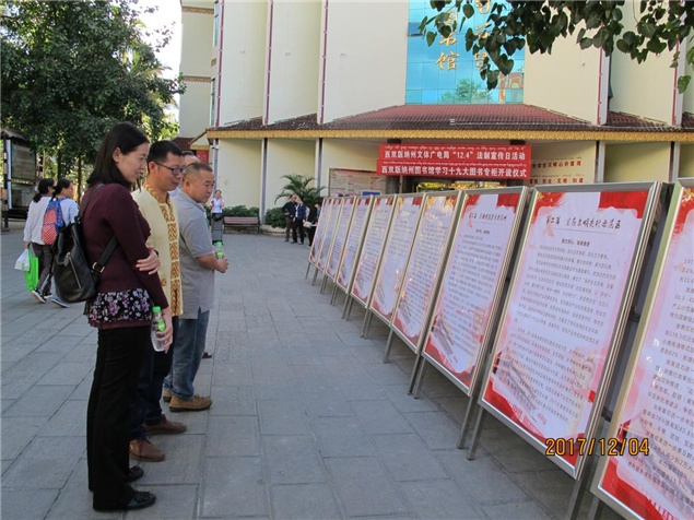 此次活动,州图书馆全面搜集了13种有关十九大内容的报刊、书籍、宣传册等学习资料,向读者推荐《决胜全面建成小康社会夺取新时代中国特色社会主义伟大胜利》、《入党40个人的信仰选择》、《中国共产党第十九次全国代表大会文件汇编》、《党的十九大报告学习辅导百问》等书籍和宣传册供读者阅读。同时州图书馆还在“移动图书馆”和电子借阅机开设了十九大专栏,内容包括《托起“中国梦”社会主义价值观》、《中国梦振兴曲》、《中国问责:十年风雨路》、《依法治国新举措》等100多种刊物,供读者下载学习。活动中工作人员还向过往市民赠送了《十九大学习笔记本》100册,发放法律法规、政策解答等11种1000余份相关知识和宣传手册。