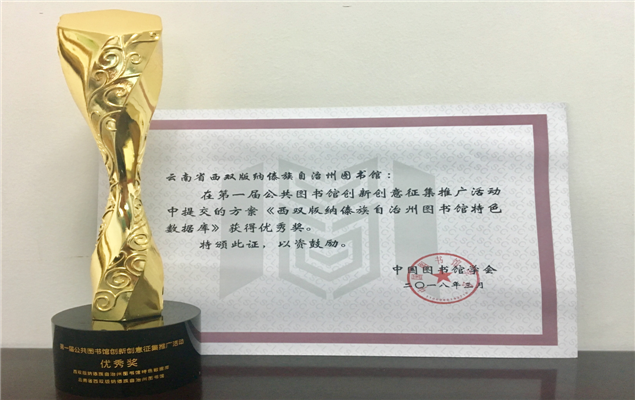 近日,在中国图书馆学会公共图书馆分会举办的第一届创新创意征集推广活动中,州图书馆提交的《西双版纳傣族自治州图书馆特色数据库》方案,获得创意“优秀奖”。此次创新创意征集推广活动,旨在发现一批创新示范性强、应用价值高、具有推广借鉴意义的创新创意项目,推动图书馆创新和创意项目在全国范围内的交流展示和学习借鉴。