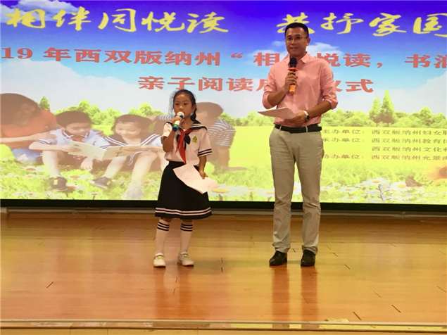活动旨在全州传播家庭亲子阅读理念,引导父母和孩子一起读书,让孩子从小养成良好阅读习惯,促进父母与孩子共同成长,通过发挥读书在家庭教育中的独特作用,传播科学家庭教育理念,弘扬家庭文明新风尚。启动仪式上,州妇联党组书记、主席刀琼英致辞,州妇联副主席李云丽宣读《西双版纳州“相伴悦读 书润傣乡”亲子阅读活动倡议书》,倡议每一个家庭行动起来,家长多带孩子去书店、图书馆,每天和孩子共享一小时的亲子阅读时光,培养儿童良好阅读习惯,促进家庭文明新风尚等方面的特殊重要作用。让父母与孩子在书香中共同成长,在读书当中享受快乐,享受幸福。家庭亲子朗读分享活动现场,允景洪小学一年级邓涵畅小朋友家庭为大家朗读《爱无处不在》,允景洪小学二年级石依灵小朋友家庭为大家朗读《青蛙卖泥塘》,胡语傲小朋友家庭为大家朗读《安的种子》。州图书馆副馆长依旺叫向小学生推荐了课外必读书目,介绍了“西双版纳移动图书馆”的内容和借阅操作流程,欢迎各位同学到州图书馆借阅图书。(州图书馆 张春华)