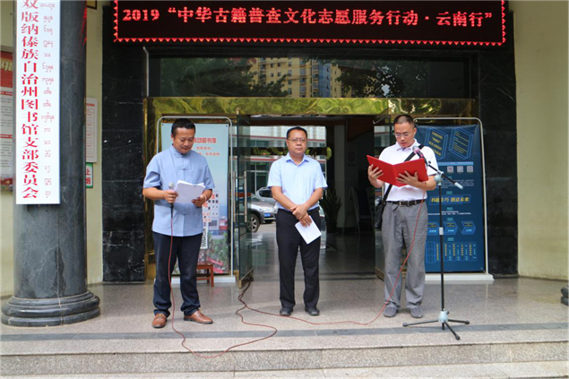 为做好全州古籍普查,加快完成古籍普查工作任务,7月11日上午,2019“中华古籍普查文化志愿服务行动·云南行”在州图书馆举行启动仪式,来自全州一市两县图书馆主要负责人及州图书馆业务骨干等志愿者共100余人参加了活动。
