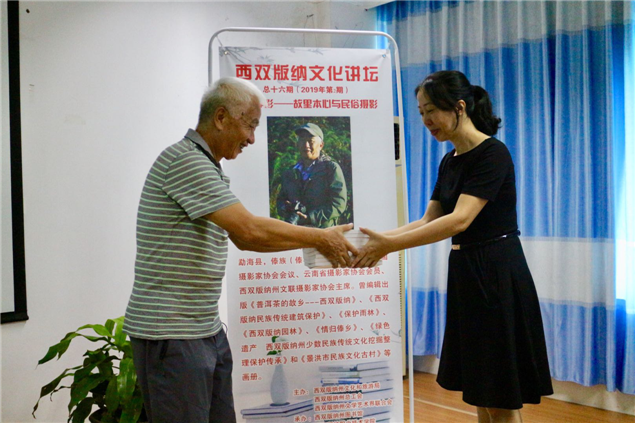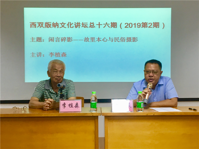 7月20日,西双版纳文化讲坛”2019年第2期专题讲座在州图书馆开讲,本期邀请本土民俗摄影师李植森担任主讲嘉宾,州文旅局、州总工会、州文学艺术界等有关领导出席活动,现场50余名读者及摄影爱好者聆听了讲座。