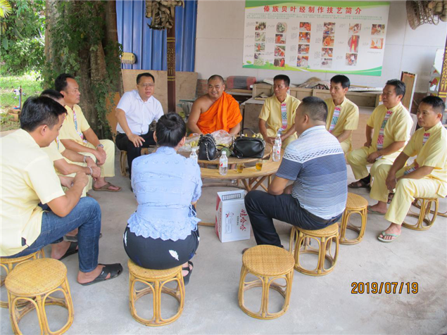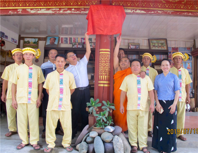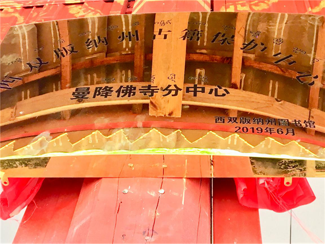 7月19日下午,西双版纳州图书馆为勐罕镇曼降村佛寺挂牌成立“西双版纳古籍保护中心曼降佛寺分中心”,州文化和旅游局副局长邱晓灵、州图书馆相关人员及曼降佛寺非遗传承人参加了挂牌仪式。(文图:州图书馆 张春华)