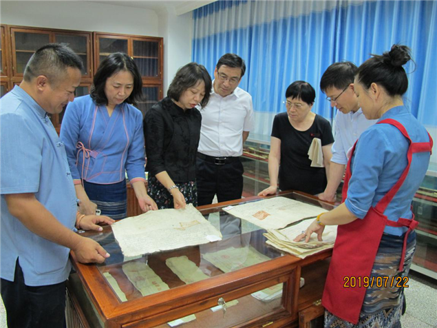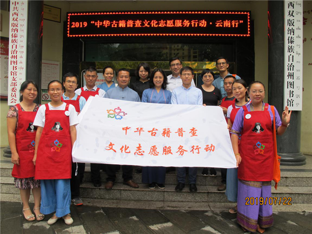 7月20日—22日,中国古籍保护协会副会长、上海图书馆原党委书记、研究馆员叶汝强,中国古籍保护协会副秘书长、研究馆员王红蕾,武汉大学教授刘家真巡察组一行,在云南省图书馆馆长王水乔和古籍保护中心办公室主任计思诚的陪同下,到西双版纳州图书馆开展2019年“中华古籍普查志愿服务·云南行”巡察工作。