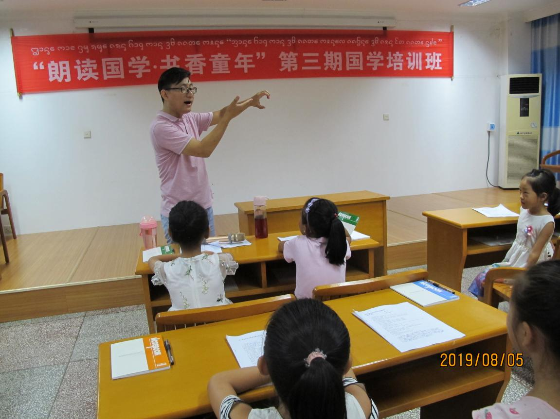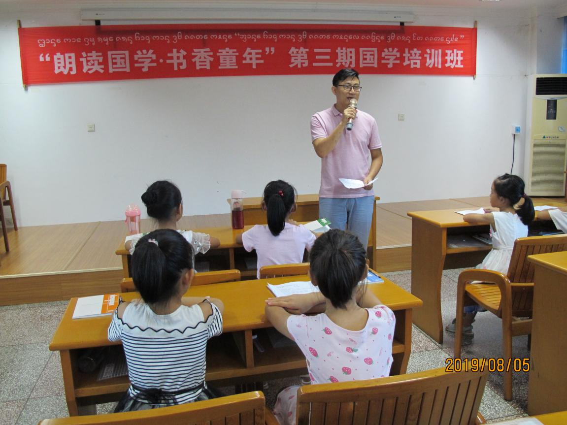 8月5日—9日,州图书馆举办以“朗读国学、书香童年”为主题的第三期少年国学公益培训班,邀请西双版纳广播电视台新闻播音员金时主讲;来自全州热爱国学、热爱阅读的7—12岁的少年儿童40余人参加了讲座,感受朗读经典的独特魅力。