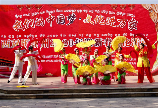 1月20日,州委宣传部、州文旅局组织州级文化事业单位、文化企业和景洪市文旅局等单位开展以“我们的中国梦——文化进万家”为主题,突出民族味、文化味、欢乐味的节庆文化活动。州文旅局党组书记、局长黄臻亲临现场开展活动。