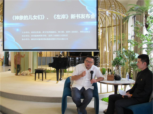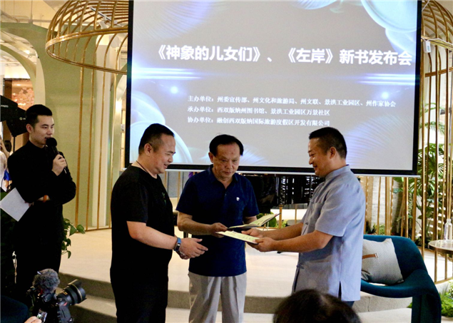 两本新作由云南民族出版社出版。州委宣传部、州文化和旅游局、州文联、景洪工业园区、州作家协会主办本次活动,州图书馆、景洪工业园区万景社区承办,融创西双版纳国际旅游度假区开发有限公司协办。发布会上,云南省作家协会副主席、《边疆文学》主编潘灵,曲靖作协主席、作家段平等为大家分享了《神象的儿女们》和《左岸》的读后感。发布会现场,两位作家向州图书馆赠送新书,州图书馆为他俩颁发了图书收藏证书。