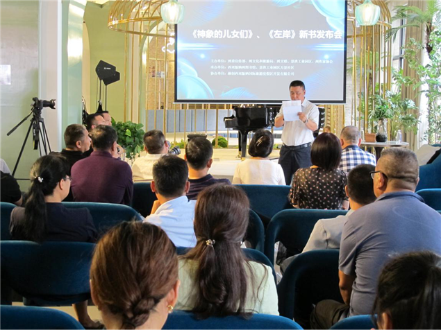7月5日上午, 西双版纳本土作家边八哥的《神象的儿女们》和段弋的《左岸》新书发布暨赠书仪式在西双版纳州图书馆万景社区分馆举办,来自省、州文化知名作家、州有关领导和一些文学爱好者参加了活动。