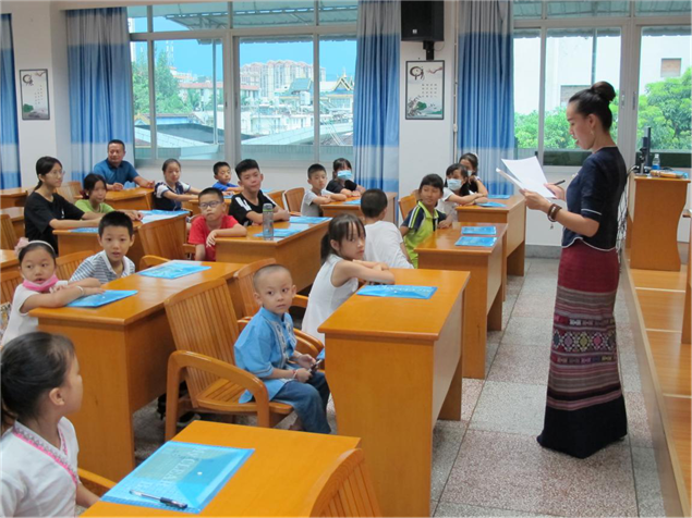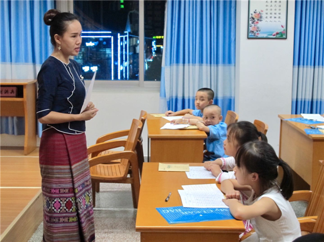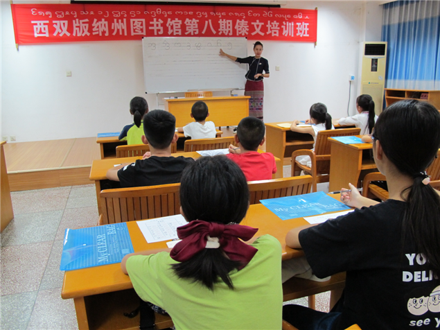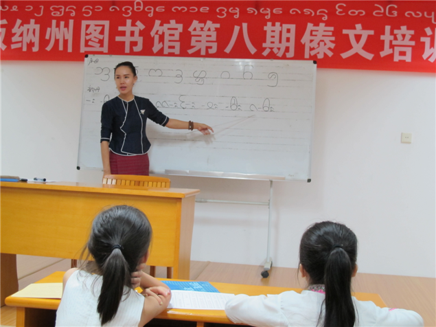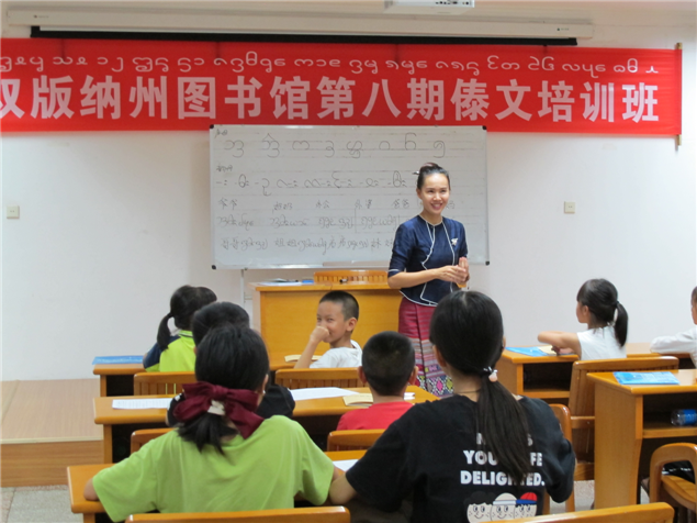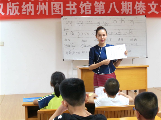 此次暑假傣文培训班时间是8月10日—21日每晚19:30---21:30,州图书馆邀请西双版纳广播电视台傣语播音员玉应罕为参训学员教授,培训课程内容主要有傣族声母表、韵母表、声调表、声韵母发音要领、傣语调值、傣语变调规律和傣文的书写笔画顺序、拼读法及常用字词等内容。通过现场教学,使学员了解和掌握傣文基础知识。(文图: 西双版纳州图书馆 张春华)