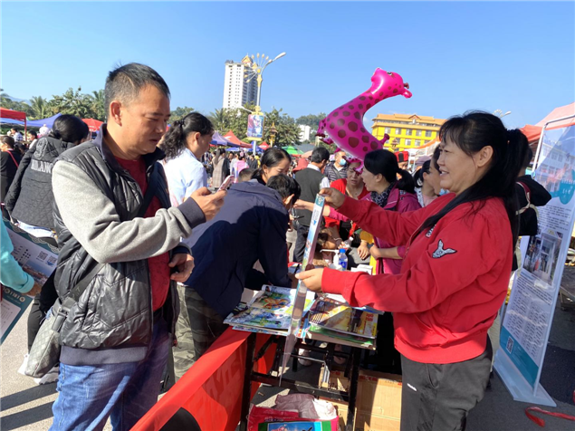 此次活动,由西双版纳州文化和旅游局主办,西双版纳州图书馆和勐腊县图书馆承办,图书馆工作人员精选100余册优秀经典图书,在勐腊县泼水广场进行推荐,现场为市民办理图书借阅证,宣传数字图书馆推广工程、APP、微信公众号,耐心解答读者咨询等服务,倡导爱读书,多读书,让更多的市民充分享受公共图书馆数字资源服务,丰富城乡居民精神文化生活。(文图:西双版纳州图书馆 张春华)