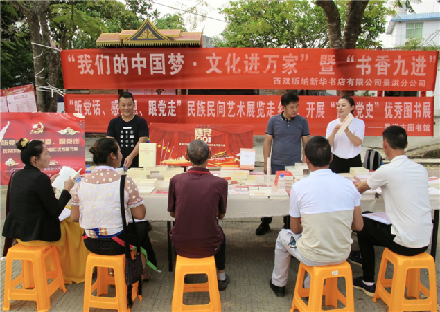活动先后走进景洪市勐罕镇、景讷乡、大渡岗乡等乡镇,州、市图书馆重点精选《论中国共产党历史》、《毛泽东邓小平江泽民胡锦涛关于中国共产党历史论述摘编》、《中国共产党简史》、《习近平新时代中国特色社会主义思想学习问答》、党史国史系列等红色经典图书,以及农技知识、经典文学、健康保健、少儿读物等,向群众推荐经典图书,倡导大家读党史,学习党的理论,让党的创新理论走进寻常百姓家,重温红色经典,传承革命精神。(文图:西双版纳州图书馆 张春华)