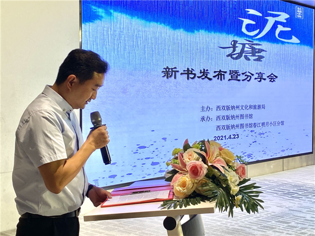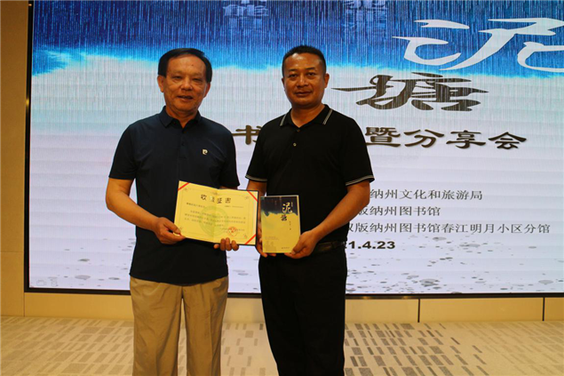 下午,在西双版纳州图书馆春江明月分馆举办由本土作家边八哥(原名王正聪)著的《泥塘》新书发布暨分享会活动,现场举行了新书签名赠书、捐赠仪式和分享交流,边八哥捐赠州图书馆18册新书,州图书馆负责人为边八哥颁发了收藏证书。州文旅局局长黄臻参加发布会并致词,著名作家段平与我州本土作家、文学爱好者50余人参加活动和分享交流。