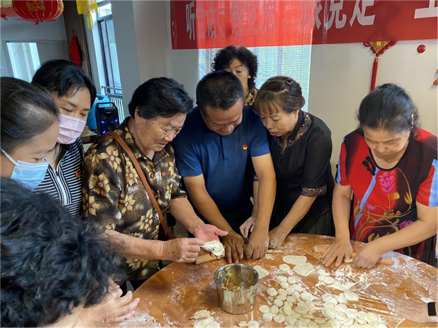 节日当天,融创美好服务中心内挤满了前来参加活动的老人们,活动邀请州图书馆退休职工和社区部分老年代表向一些外来养老的老年人讲解了西双版纳的红色党史故事,同时举办老年人茶话交流会、傣族舞蹈表演、万象美物业业主食堂包饺子等丰富多彩的敬老爱老活动,给老年人在享受文化生活的同时增进感情交流。活动现场,工作人员与老人们围在一起,大家一边包饺子一边交流手法,气氛活跃其乐融融,让老人们度过了一个快乐的重阳节。(文/图:西双版纳州图书馆 张春华)