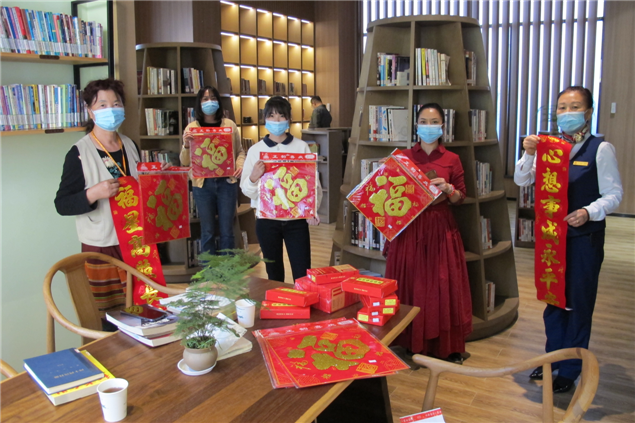 春节前,西双版纳州图书馆、春江明月分馆、万景社区分馆邀请书法家开展读者进馆送春联、限流预约群众书写春联送祝福,把“福”送到群众家里等线下活动。活动按照疫情防控相关规定和工作要求,实行疫情防控安全距离领取“春联”。