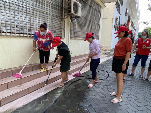 为减少疾病传播,在“三八”国际妇女节纪念活动即将到来之际,州图书馆女职工志愿者们撸起袖子,发扬不怕脏、不怕累的作风,拿着清扫工具,对图书馆的台阶、走道等公共区域进行清扫和冲洗,为读者创造更洁净的阅读环境,以实际行动倡导文明健康的生活方式,为为建设文明城市贡献自己的一份力量。(文图:西双版纳州图书馆 张春华)