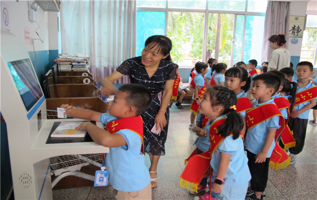 小记者们在州图书馆工作人员的带领下,参观了图书馆大数据智慧墙、电子书借阅机、智能借还机、儿童阅览室、图书自助借阅室、民族团结宣传展览等。在学习了解了图书馆的馆内布局、自助设备、藏书分类排架、借书、还书的工作流程后,“小记者”们按照图书分类编号,认真查找书架上的图书,登记后再放回原来位置,正确、快速地使用自助借还书机,体验借书、还书的全过程。通过实践,小记者们了解了图书馆,培养了爱阅读、文明阅读的良好习惯。(文图:西双版纳州图书馆 张春华)