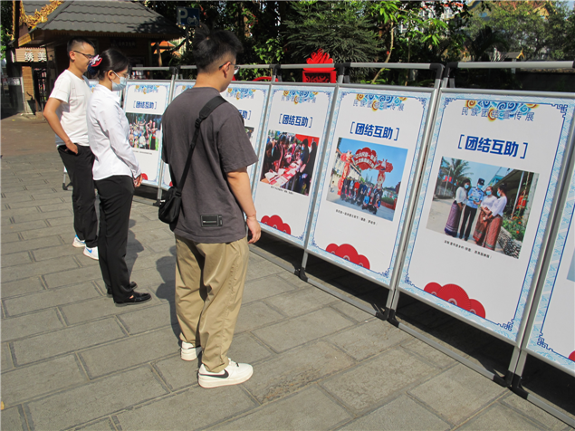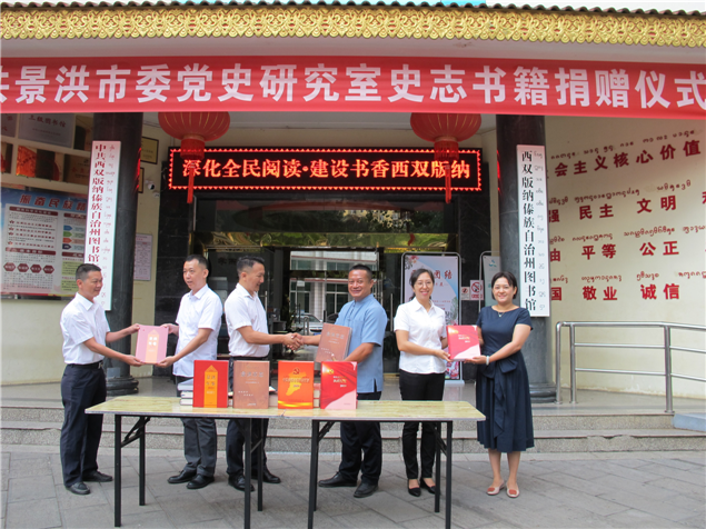 活动当天,州图书馆联合昆明新知集团有限公司景洪分公司、中国广电云南网络有限公司西双版纳州分公司、中国银行版纳大厦支行等单位开展图书展览阅读推广活动。精选习近平新时代中国特色社会主义思想、党的二十大精神的理论读物、经典文学、特色馆藏书籍等进行书展,并发放图书宣传册100余份,向广大市民群众推广阅读。现场还举办了“民族团结互助图片展览”,宣传“中华民族一家亲,同心共筑中国梦”,反映了各族群众平等相待、团结互助、和谐相处的民族关系。古籍展览,展示佛本生经贝叶经画、贝叶经《十世轮回》、绵纸古籍《朗嘎西贺》,绵纸古籍修复照片,宣传古籍保护意识。活动现场,市委党史研究室向州图书馆捐赠《景洪市志》、《景洪年鉴》等6种18册图书。昆明新知集团有限公司景洪分公司展出推广最新出版的经典图书;中国广电云南网络有限公司西双版纳州分公司宣传推广数字文化阅读;中国银行版纳大厦支行推广宣传金融知识及数字人民币业务。