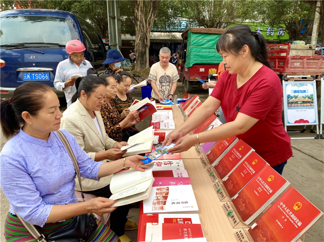 为进一步铸牢中华民族共同体意识,丰富各族群众精神文化生活,西双版纳州图书馆联合景哈乡社会事业服务中心开展书香乡村阅读推广、民族团结宣传展活动。