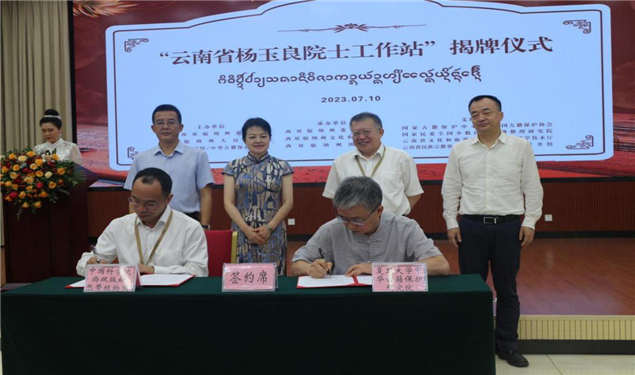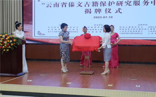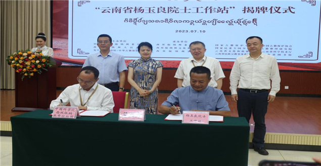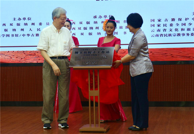 中国科学院杨玉良院士与西双版纳州委副书记、州委统战部部长王嘉玲为“云南省杨玉良院士工作站”揭牌。云南省文化和旅游厅副厅长王江红、西双版纳州人民政府副州长胡向京在揭牌仪式上致辞;国家图书馆(国家古籍保护中心)、中国古籍保护协会、复旦大学、国家民委全国少数民族古籍整理研究室负责人等在揭牌仪式上发言。