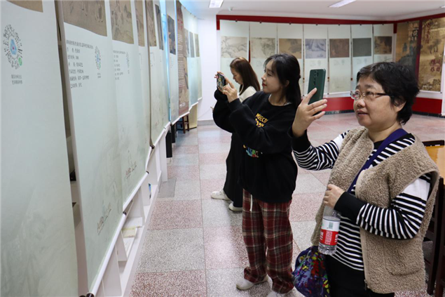 《惟砚作田·中国古代耕读文化艺术展》展出“渔樵耕读的符号”、“士人对耕作的反哺”和“儒隐隐于耕”等三个模块,从中国传统绘画的角度介绍耕读文化。耕读文化的主体本就是中国传统社会中的文人,而受到耕读文化影响的文人在进行文学和艺术创作之时,其作品必然带有耕读文化的色彩。本次展览通过34 件作品,让观众在千百年后仍然有机会窥视到传统文人的“耕读”世界。欣赏到樵夫、渔夫、织女、文人的生活日常。《书藏百相·明清古籍小说插画艺术展》共展出44幅作品,分为“何以为相”“探相于书”“流派纷呈”“文趣使然”“极盛转衰”五部分,通过探究明清古本小说插图生产大众符号的过程,带领读者生动了解古本小说插图不同阶段的特点。展览将诗词、故事、时代背景等注解穿插于展览之中,并在每副绘画作品上标识二维码,读者对于感兴趣的作品扫码即可了解详细信息,可谓雅俗共赏。(文图:西双版纳州图书馆 张春华)