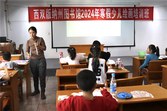 本次培训内容有:学习水粉画、水彩画、手工制作、素描等。课堂上,孩子们根据老师讲解基础绘画的步骤和绘画技巧,用笔画勾勒出一幅幅生动的图画,再手工剪纸粘贴,通过认真观察绘画物品,培养少儿艺术思维能力,激发少儿绘画兴趣。培训时间为1月29 日至年2月 2日下午17点—18点半。(文图:西双版纳州图书馆 张春华)