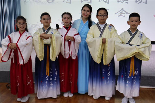 活动开始,孩子们分别朗诵了《春江花月夜》《满江红.写怀》《忆江南》《行路难》《爱莲说》等经典古诗词。邀请嘉宾分享诗歌鉴赏苏轼《惠州一别》《借古诗词之美为作文添彩》等。现场,在主持人梁旭的引导下,进入“飞花令”古诗词接龙互动环节,孩子们分成小组,通过屏幕显示,现场说出带有“春、月、酒”等飞花令令词的诗句,大家积极上台抢答最后夺得飞花令诗魁的小读者获得一份小礼品,鼓励孩子们学习、积累古诗词的兴趣。(文图:西双版纳州图书馆 张春华)