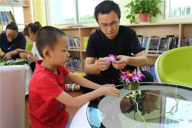 活动开始,孩子们认真聆听傣族泼水节的来历,习俗和放水灯的寓意,欣赏《难忘的泼水节》。随后,在图书馆工作人员的指导下学习制作水灯,激发了孩子们制作水灯的热情,孩子们在家长的配合下用芭蕉树、芭蕉叶和鲜花等环保材料制作完成一个个精美的水灯。制作水灯既锻炼了孩子们动手能力,也让大家在制作过程中感受到泼水节的独特魅力和浓厚的节日氛围。(文图:西双版纳州图书馆 张春华)