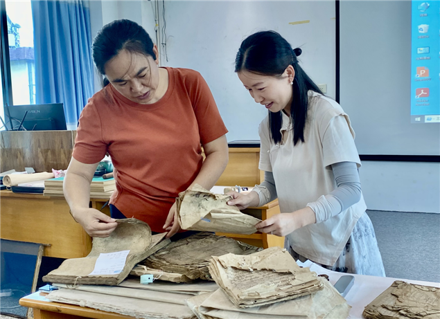 此次培训班,州图书馆邀请复旦大学图书馆古籍部古籍修复师李燕和徐强担任授课教师,学员主要学习傣文古籍修复技术,基于科学检测的古籍修复方案制定、古籍修复档案的制作、中国书画装裱修复简介与操作实践等内容。在培训期间,老师们通过理论讲解、现场演示和实际操作相结合的方式,向学员们传授古籍修复方法,工艺流程、材料选择和工具使用等方面的知识和技能。学员们不仅学习古籍的破损类型与成因分析,还实践操作参与书页修补、装订等实践操作环节,在实践中学员修复技术明显提高。(文图:西双版纳州图书馆 张春华)