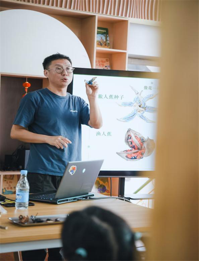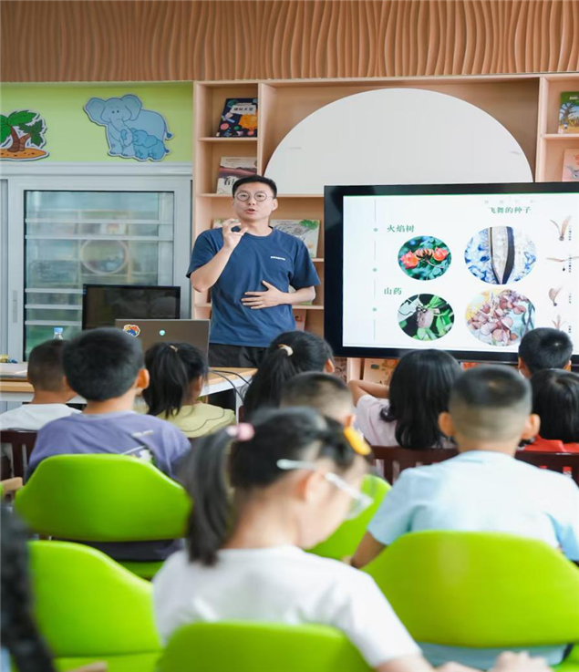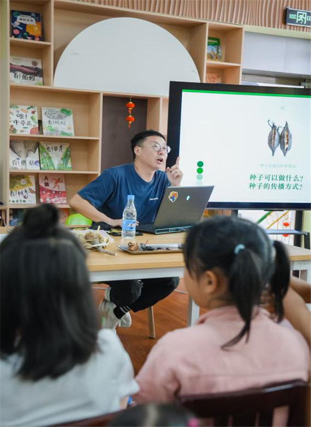 活动现场,充满了孩子们的欢声笑语和对知识的渴望。专业主讲趣趣长长自然通识张斐老师带领孩子们一同探索种子的奇妙世界。通过生动的PPT展示、实物观察以及互动问答,孩子们深入了解了种子的多样形态、复杂结构以及它们独特的传播方式。从风传播的轻盈蒲公英,到水传播的椰子,再到动物传播的果实,每一个知识点都让孩子们目不暇接,惊叹连连。