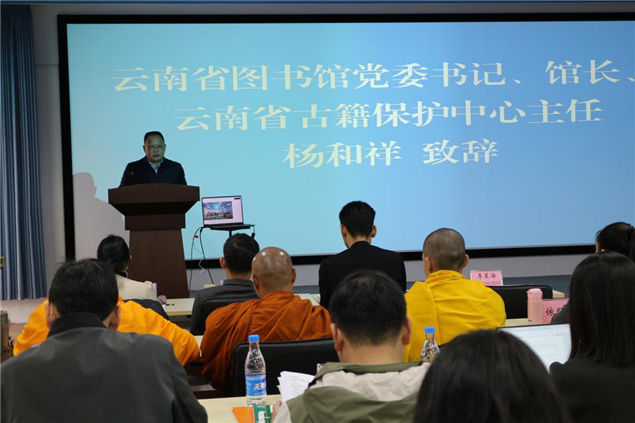开班仪式上,复旦大学原校长、中华古籍保护研究院院长、中国科学院杨玉良院士,国家民委全国少数民族古籍整理研究室副主任杨硕,云南省图书馆馆长杨和祥,西双版纳州文化和旅游局副局长岩温龙分别致辞。随后,云南省杨玉良院士工作站负责人、西双版纳傣族自治州图书馆周杨鑫馆长为首批院士工作站特聘研究员周娅、依旺的、Direk Injan颁发了聘书。