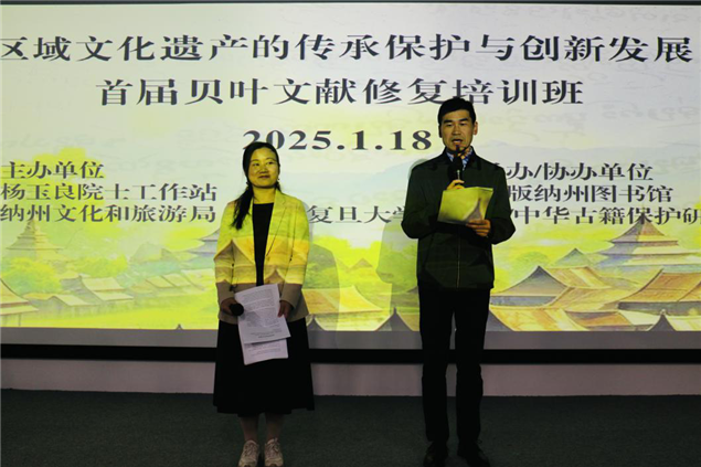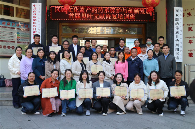 2025年1月13日至18日,由云南省杨玉良院士工作站携手西双版纳州文化和旅游局联合主办的“区域文化遗产的传承保护与创新发展——首届贝叶文献修复培训班”在云南省西双版纳傣族自治州图书馆圆满落下帷幕。此次培训班汇聚了中国、泰国、老挝三国人员,参与单位包括泰国清迈皇家大学、泰国马哈沙拉堪大学、老挝国家图书馆、中国文化遗产研究院、复旦大学、云南省少数民族古籍整理出版规划办公室、云南大学、云南省图书馆、云南省博物馆,以及西双版纳傣族自治州各市县从事贝叶文化及古籍保护研究行业的相关单位。培训内容从贝叶文献保护的基础理论与科学研究入手,通过一周的贝叶文献修复理论学习与实践操作,并邀请非遗传人亲身演示传统贝叶制作与刻写,力求为学员呈现全方位、多层次的知识架构与实践体系。此次培训班不仅是一次技艺的传承,更是文化遗产保护工作的创新探索,为区域文化遗产的传承与发展注入了新活力。