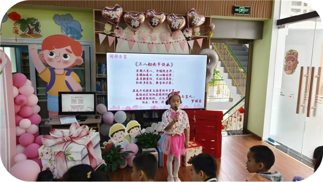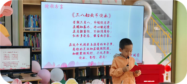 小朋友们踊跃上台,分享自己心中的巾帼故事。一位小朋友激情讲述刘胡兰英勇就义的革命事迹,让大家对先烈满怀崇敬。还有小朋友朗诵《感恩有你》《三八妇女节快乐》等诗歌,纯真的话语传递着对女性长辈的敬爱,温暖了整个现场。