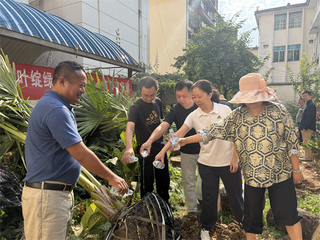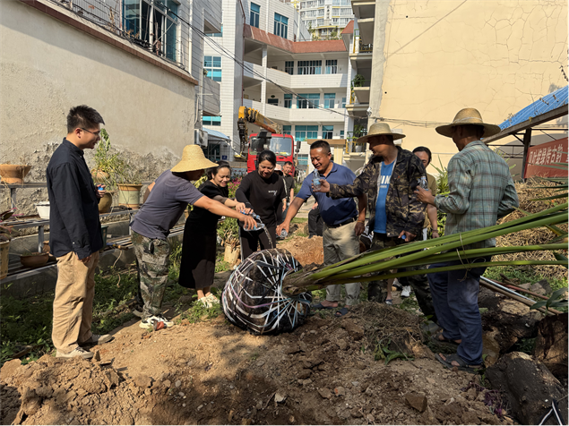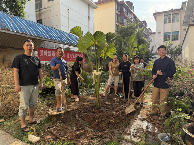 活动当日,西双版纳州图书馆内气氛热烈,在周杨鑫馆长带领下院士工作站人员积极参与种植贝叶棕活动。贝叶棕作为承载贝叶经这一珍贵文化遗产的独特载体,具有极高的文化价值。在工作人员的指导下,参与者们亲手种下3株贝叶棕树苗,体验劳动的乐趣,也感悟到保护传统文化根基的重要性。