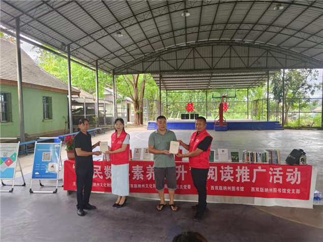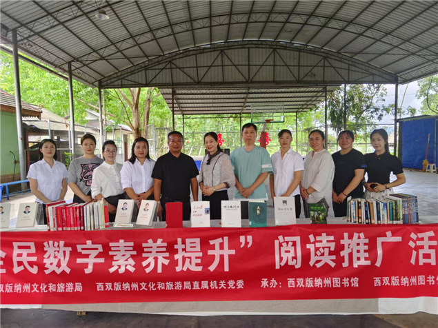 为积极响应习近平总书记关于“党建+业务”的重要指示精神,充分发挥党建引领作用,2025年5月16日,在州文化和旅游局直属机关党委及勐腊县文化和旅游局党组的指导下,州图书馆党支部联合勐腊县图书馆、勐腊镇人民政府,来到勐腊镇曼样村小组开展阅读活动,致力于提升全民数字素养,助力群众更好地融入数字化时代。