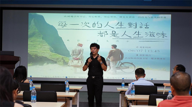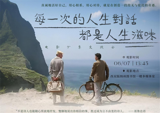 2025年6月7日下午,西双版纳州图书馆在一楼多媒体室精心策划并举办了“观影《邮差》交流分享会”活动,本次活动由西双版纳州文化和旅游局主办,西双版纳州图书馆承办,并邀请西双版纳州公安局交通管理支队王黎警官作为本次电影分享会的主讲人。旨在为广大群众搭建一个深度交流的平台,让大家共同沉浸在这部经典影片的魅力之中,感受艺术的无限力量,同时推动文化的交流与共享。