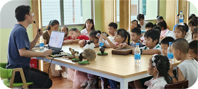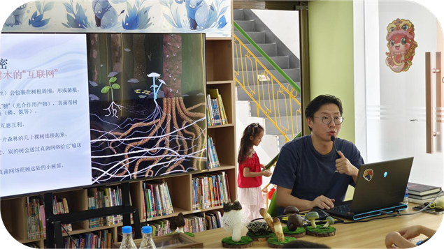 “地下的丝线电话”环节掀起高潮。张老师把真菌菌丝比作大自然的通信网,原来这些藏在地下的“丝线”,连接着树木、昆虫和微生物,默默维持着物质循环。孩子们听得入神,仿佛真的看到了地下那张神奇的生命网络。