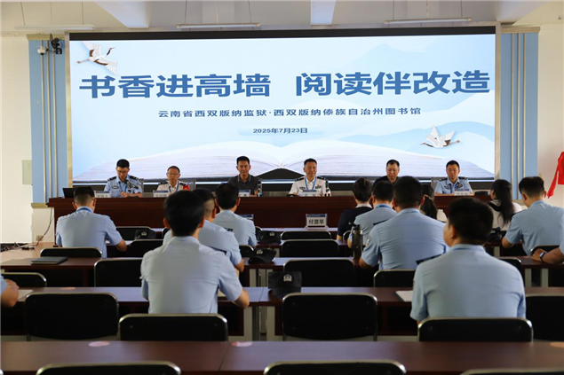 2025年7月23日上午,阳光洒在西双版纳监狱教育中心四楼,一场意义非凡的揭牌仪式在此庄重举行——西双版纳傣族自治州图书馆西双版纳监狱狱内分馆正式宣告成立。西双版纳监狱领导、西双版纳傣族自治州文化和旅游局领导、西双版纳傣族自治州图书馆领导及两家单位相关工作人员,以及45名服刑人员代表共同出席仪式,共同见证这一将文化种子播撒进高墙、助力心灵重塑的重要时刻。