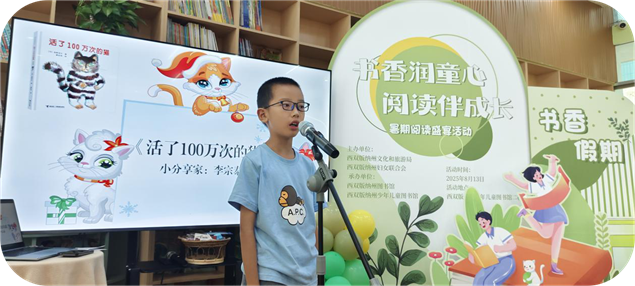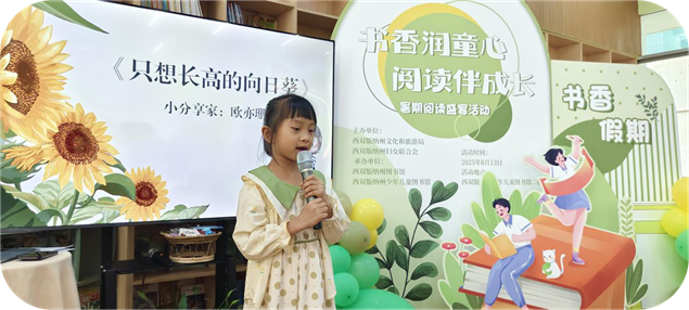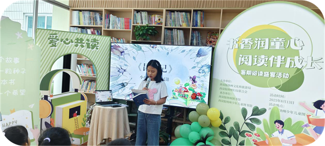 书香分享环节中,8位小朋友带来精彩书籍分享。黄骞可分享《属于我和爸爸的地方》,感悟亲情;李宗泰解读《活了100万次的猫》,诠释生命意义;段可懿带大家探索《昆虫记》里的微观世界;欧亦珊讲述《只想长高的向日葵》,传递扎根成长的道理。罗梓睿、玉涵颖、游思源、黄骞琳也分别分享《小黑鱼》《慢慢来的兔子》《愚公移山》《妖怪山》,带来团结、惜时、坚持、友情的启示。台下小听众们听得入神,互动间,阅读的热情被点燃,书香愈发浓厚。