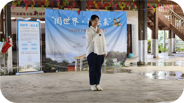 午后的村寨里,书香渐浓。在云南省“最美阅读推广人”、州图书馆阅读推广大使梁旭老师的引导下,孩子们纷纷登台分享。7岁的李怡琳用清亮的童音朗诵《雨林少年 筑梦家园》,同岁的郑秋怡带来《风》,稚嫩的话语满是童真;初二学生彭盈莹娓娓道来《绿山墙的安妮》里的温暖故事,8岁的陈芷愉以《四季》勾勒自然之美,石依灵则带着大家在《宇宙年历里的最后4分钟》里探寻星空奥秘。熊莹律师也携女儿带来了亲子朗诵《读中国》。