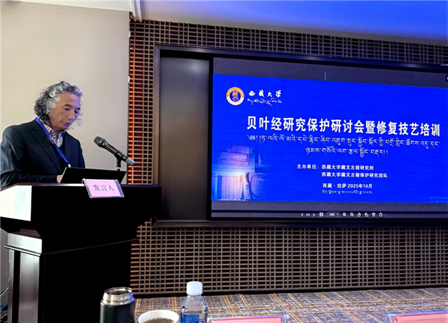 10月12日至15日,杨玉良院士工作站团队成员应邀赴西藏拉萨,参加了由西藏大学藏文古籍研究所主办的“贝叶经研究保护研讨会暨修复技艺培训”。期间,团队成员围绕贝叶经的保护、修复与研究等核心议题发表了主题报告,分享了前沿成果与见解。同时,团队还深度参与了古籍修复技艺的专项培训,通过理论研讨与现场实操,与同行专家交流了宝贵经验。此外,团队一行受邀前往布达拉宫博物馆,对馆藏贝叶经的存藏现状与保护情况进行了实地调研。此次赴藏交流,不仅有效提升了我国贝叶经的整体研究保护水平,更深化了各民族间的文化交融,为未来贝叶经研究领域的跨区域合作与资源共享奠定了坚实基础。