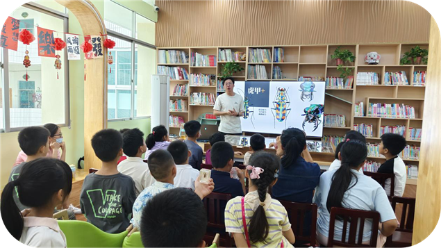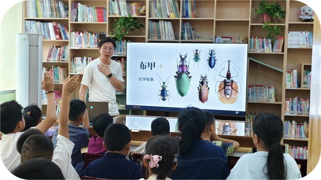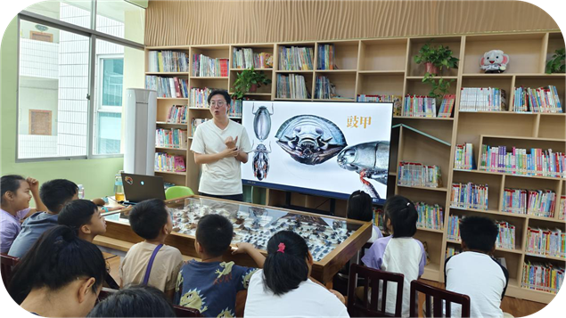 11月1日上午,西双版纳州少年儿童图书馆二楼热闹非凡,36名自然博物爱好者齐聚一堂,参与《成长的艺术--雨林中的铠甲英雄》主题科普课。主讲老师张斐以生动讲解,带孩子们解锁鞘翅目甲虫的神秘面纱,感受自然与科技的双重智慧。