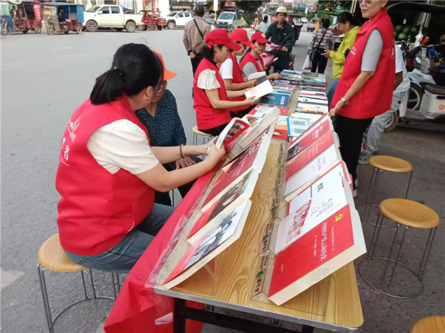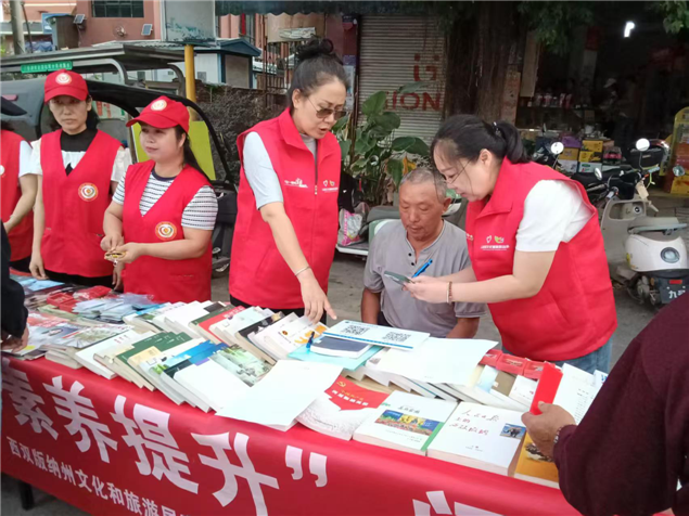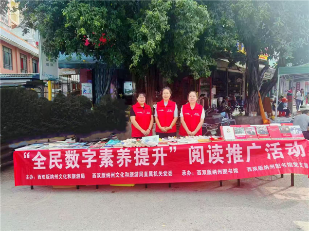 11月7日,州图书馆赴景洪市勐养镇,开展以"全民数字素养提升"为主题的阅读推广活动。为村民送去了文学、科普、儿童读物、杂志等共200余册图书。