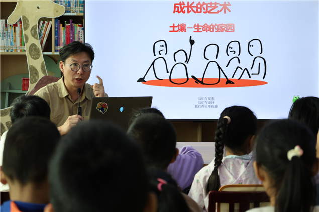 “土是什么?”“土壤又是什么?”“土里有什么生命?”三个问题瞬间点燃现场。张老师用通俗语言帮孩子们分清“土”与“土壤”的区别,详解土壤作为“有生命的混合物系统”的组成,让大家明白脚下的“方寸之地”是地球生态的重要根基。
