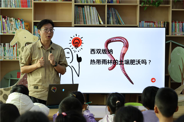 11月22日上午,在西双版纳州少年儿童图书馆二楼,30名自然博物爱好者参与《土壤:生命的家园》自然通识科普活动。科普老师张斐以趣味提问引路,带孩子们解锁土壤里的奇妙世界。