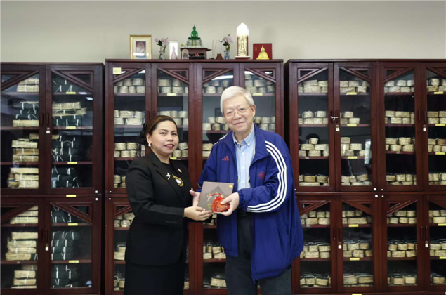 代表团首站访问清迈皇家大学,杨玉良院士、周杨鑫馆长及院士工作站团队与校长CHATREE MANEEKOSOL及相关负责人举行文化交流会谈,就落实合作备忘录、规划联合科研项目深入磋商。回顾合作历程,泰方连续选派学员参与西双版纳贝叶文献修复培训班,系统掌握科学保护技术;清迈皇家大学专家也多次来华开展学术讲座,实现知识与技术双向流动。此次会议聚焦“多学科交叉视角下的贝叶经保护创新与传承发展”这一议题,标志着双方合作从文化交流层面向多学科融合的协同发展阶段迈进。会后,代表团一行赴该校艺术与文化学院贝叶经博物馆开展实地考察,围绕馆藏文物规范化管理、文化内涵深度阐释及公共文化教育创新实践等重点内容,与相关负责人进行了深入细致的交流探讨,为双方后续合作提供了有益参考。