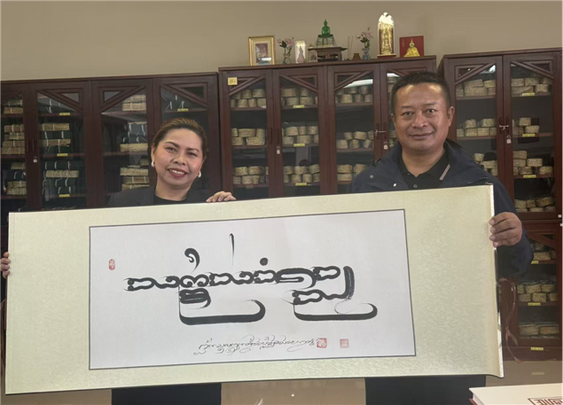 西双版纳州图书馆向清迈国家图书馆赠送傣文书法作品