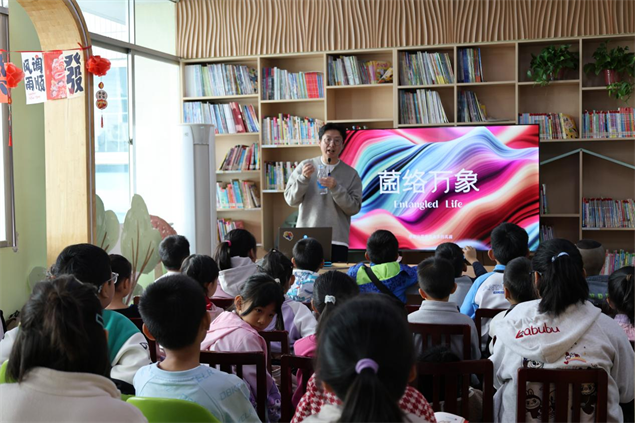 随后的课堂上,张老师用通俗易懂的语言,带孩子们认识了土壤里的各类“迷你工程师”。孩子们知道了真菌是蘑菇的亲戚,是土壤里的分解小能手;个头渺小的细菌,有着超强的本领滋养土壤;蚯蚓、白蚁、跳虫等小动物吃土钻洞,为土壤松土通气;植物的根系还会分泌物质吸引有益菌,和真菌和谐共生。大家真切感受到,看似平平无奇的土壤里,藏着一个热闹的地下世界,正是这些小生命齐心协力,才让树木茁壮、庄稼丰收,脚下的大地就是一座生机勃勃的“地下小城市”。