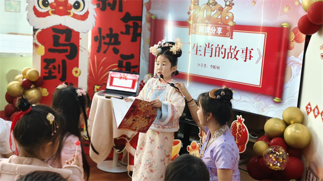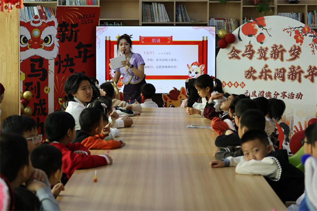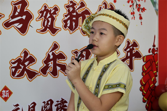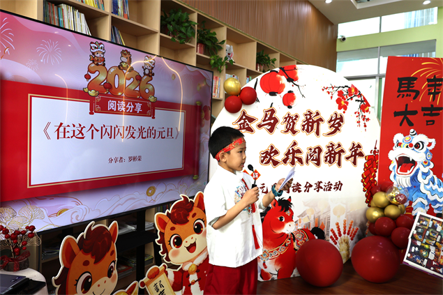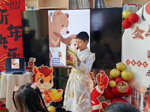 阅读分享环节成为活动核心亮点。5位小分享家依次登台,围绕新年、团圆、成长等温暖主题,分享了各自喜爱的书籍。李昕妍绘声绘色讲述《十二生肖的故事》,藏着对新年的满满期许;杨恩瑞带来《元旦 希望与祝福》,让大家加深了对元旦民俗的认知;陆佳辰分享《飞驰吧,斑马》,传递出成长路上的勇气与热爱;吴嘉礼讲述《小熊元元的元旦故事》,将团圆的美好诠释得温暖治愈;罗彬荣带来《在这个闪闪发光的元旦》,真切表达了对未来的憧憬。他们流畅的表达、真挚的情感赢得现场阵阵掌声,让阅读的魅力感染了每一参与者。
