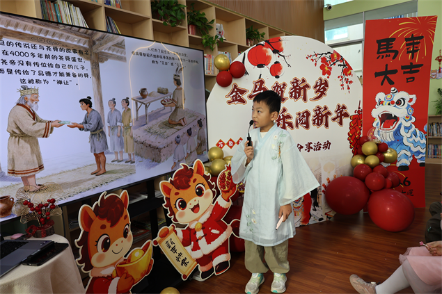 活动在州图书馆副馆长、州少儿馆负责人依旺叫的新年致辞中拉开序幕。主持人以王安石《元日》诗句为引,生动讲解了元旦民俗、马年生肖文化及“龙马精神”等吉祥成语,趣味十足的表情包猜成语游戏让现场气氛瞬间升温,小朋友们踊跃抢答,在欢笑中收获知识。