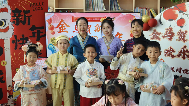 2026年1月1日上午,西双版纳州少年儿童图书馆内洋溢着欢声笑语,“金马贺新岁 欢乐阅新年”元旦阅读分享活动圆满举行。40名小朋友齐聚一堂,在民俗浸润、阅读分享与手工创作中,共度了一段充满书香的新年时光。