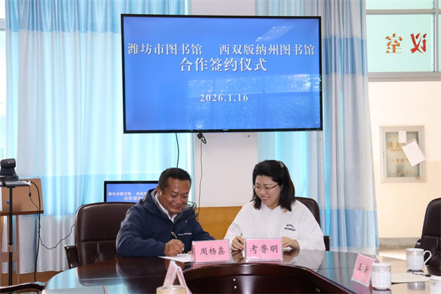 为深化古籍文献的保护与研究,加强跨区域文化交流合作,2026年1月16日,由潍坊市图书馆牵头,山东大学等单位组成的考察学习团一行到访西双版纳州图书馆,围绕文献保护与研究开展专题座谈交流,并签署《战略合作协议》。